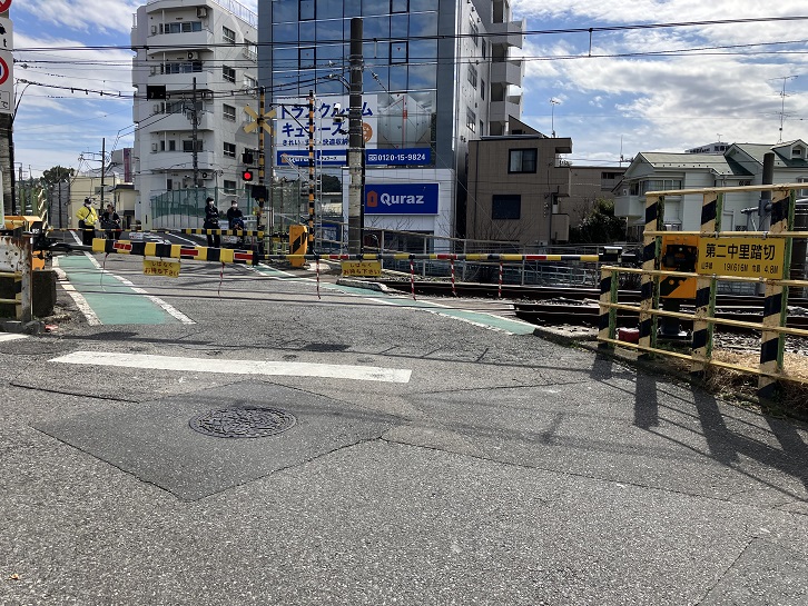 円勝寺の参道の入口横に踏切があります。「第二中里踏切」は、2005年以降、山手線に唯一残されている踏切として鉄道マニアに有名です。東京の大動脈である山手線の踏切として、ピーク時の1時間あたりの遮断時間は40分を超え、“開かずの踏切”として知られています。2029年には踏切から200mほど離れた場所にJR線の線路を跨ぐ跨線橋が造られることになり、第二中里踏切はその時点で廃止されることになっています。