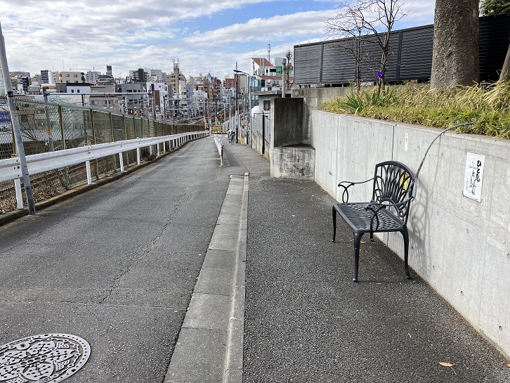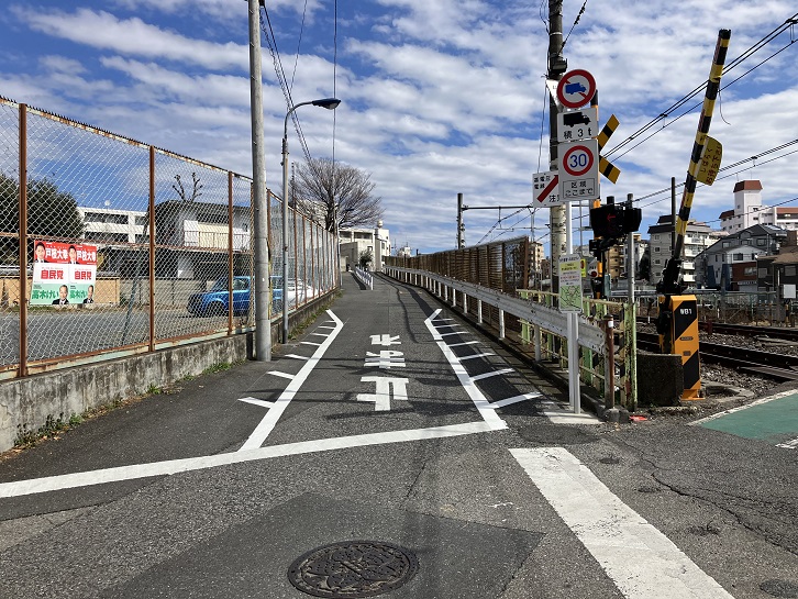 踏切の横から駒込学生会館付近まで線路に沿って坂が上がっています。