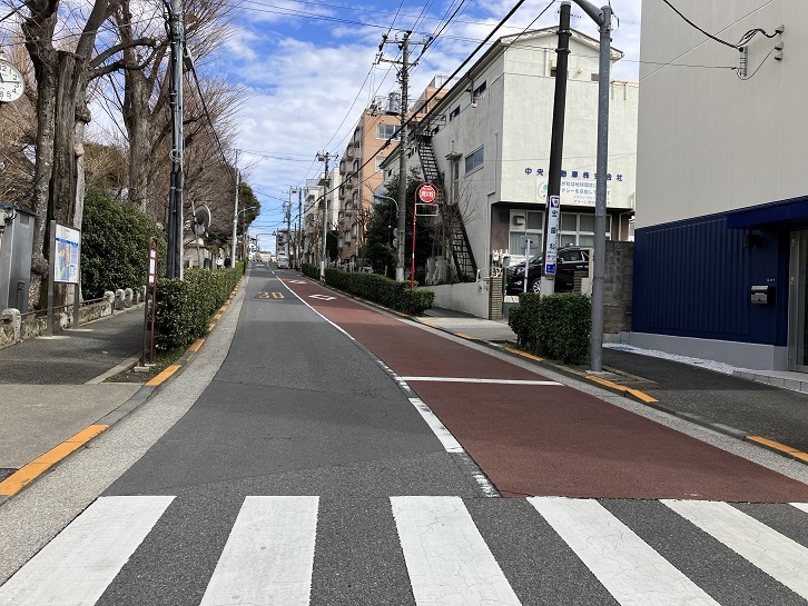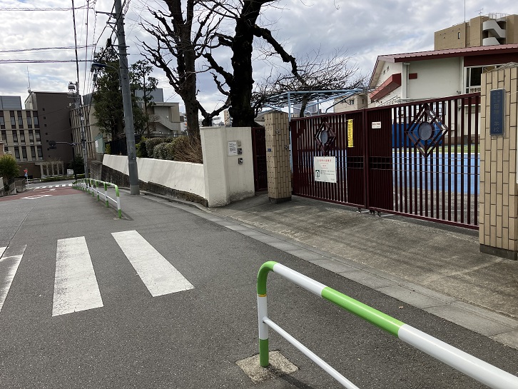 坂は坂上でクランク状に曲がって広い道路を横断し、田端小学校の脇まで上がっています。