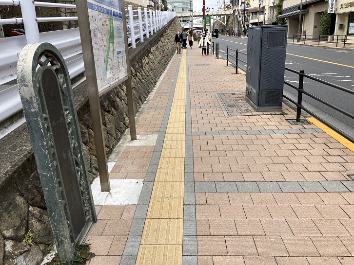 石坂は長さが約210mほどの緩やかな坂です。坂名の由来ははっきりしていません。坂はふたつの区間に分かれ、最初の区間は赤紙仁王通りから東覚寺に繋がる広い道路までです。