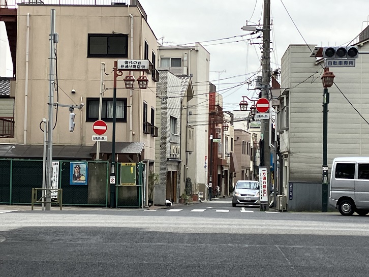 商店街の中ほどから緩やかな坂が下っています。坂下には御代乃台地域安全センター滝野川警察署の交番があります。