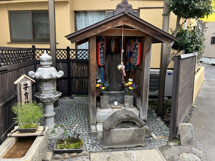 御代の台の坂(みよのだいのさか)は長さが約130mほどの緩やかな商店街の坂です。「御代(みよ)」は「天皇または王が在位している期間のこと」という意味だそうです。この道は古道のようですが、ネットで調べても「御代の台」とのつながりは分かりませんでした。坂下の右手には、寛文十一年(1671年)に滝野川右平が造立した子育地蔵尊が祀られています。