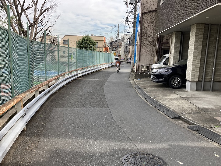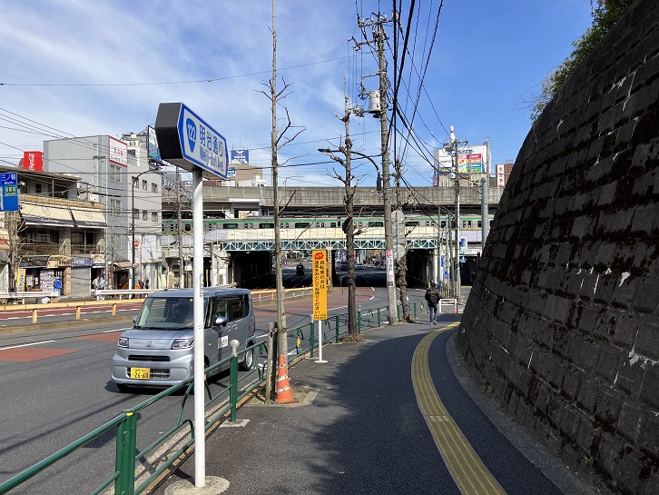 本郷通りから飛鳥山公園の東縁に沿う道路に入りますと、妙見寺の先の飛鳥山レジデンスの横からJR線の線路に向って下る坂があります。