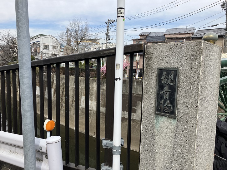 石神井川に架かる観音橋に出ます。川沿いの遊歩道脇には早咲きの桜が満開となっています。