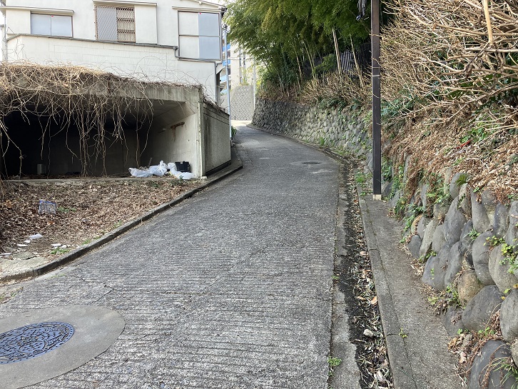 滝野川六丁目交差点から右手の路地に入ったところから坂が下っています。