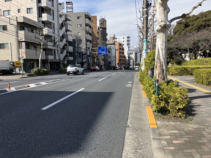 本郷通りに戻ります。飛鳥山公園の駐車場の先から「飛鳥山3つの博物館」の前まで、本郷通りが緩やかに下っています。