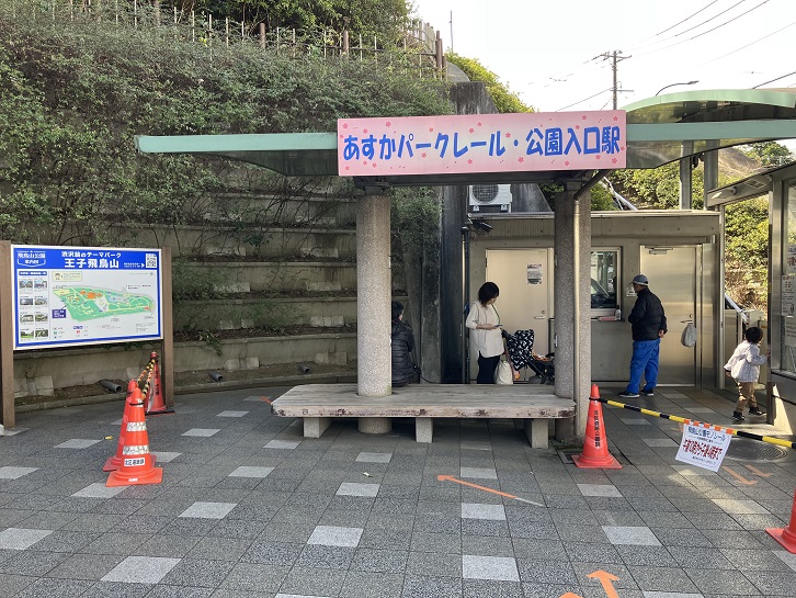 飛鳥大坂に沿って、崖上の飛鳥山公園からモノレールが下ってきています。飛鳥山モノレール(あすかパークレール)は、JR王子駅中央口改札すぐ前の公園の入口から山頂までの高低差約18m・レール延長48mを約2分で結んでいます。2009年7月17日から運行が始まり、高齢者・障害者・小さな子供を連れた家族連れなどでいつも賑わっています。無料で乗車でき、冷暖房も完備されています。車両はかたつむりに外観が似ていることもあって、「アスカルゴ(アスカヤマ+エスカルゴ)」という愛称が付けられています。