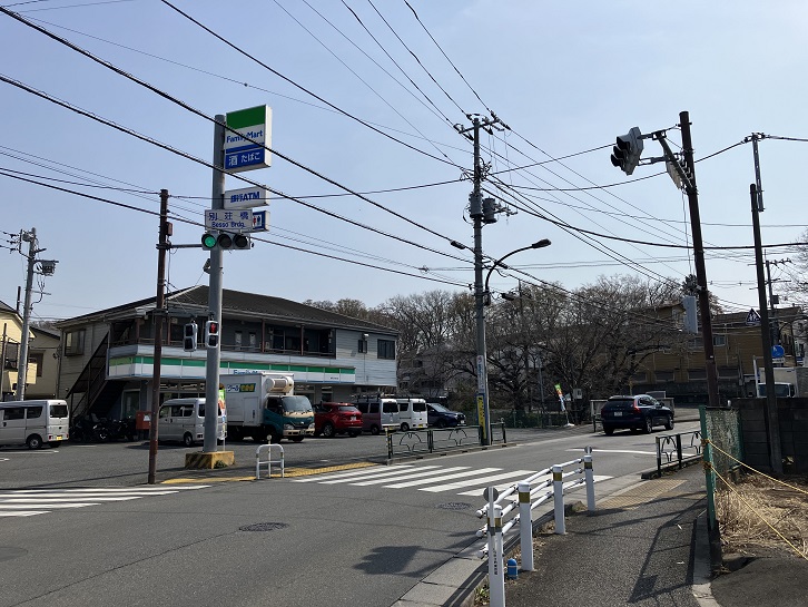 らんとう坂下から少し進んだ先のバス停や交差点名に、「別荘橋」という名前が付いています。