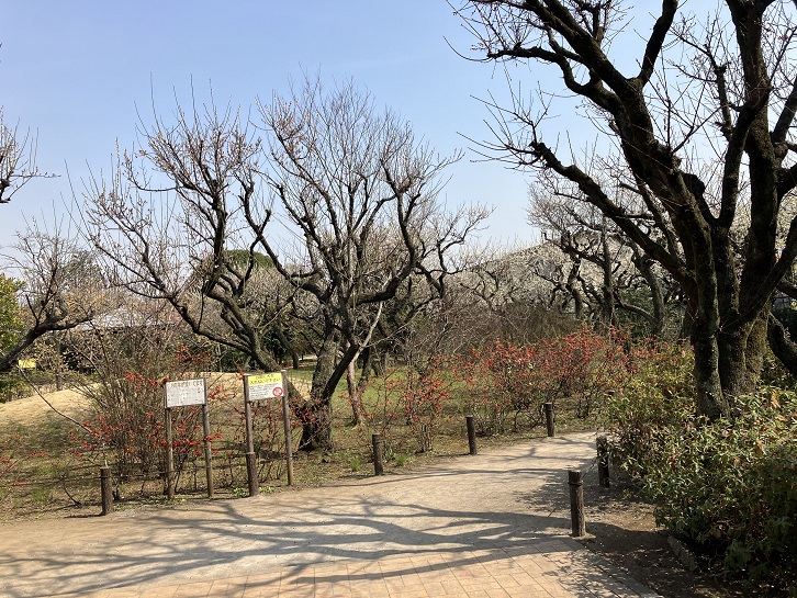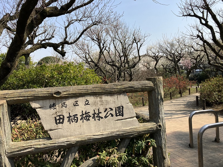 光が丘消防署前交差点を右折し、光が丘東大通りを南下します。左手に田柄梅林公園があります。梅の花が見頃を迎えています。