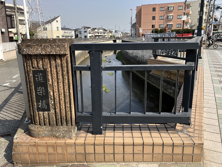 別荘橋は白子川に架かる橋です。白子川は練馬区大泉・埼玉県和光市・板橋区成増地域を縫うように流れ、笹目橋付近の板橋区三園で新河岸川に合流しています。かつての白子川は、現在の東京都と埼玉県の県境に沿って流れていました。
