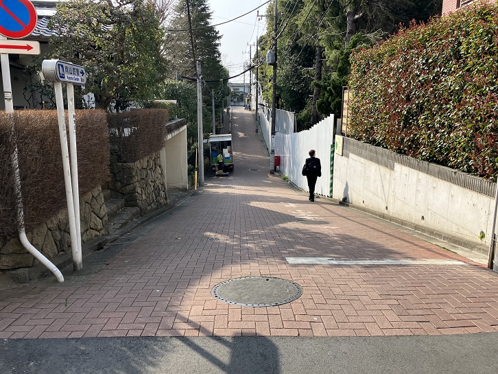 別荘橋を渡った先から坂が上っています。
