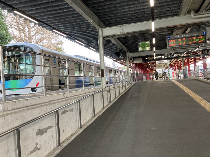 今日のゴール地点の豊島園駅に着きました。豊島園駅は、豊島園跡地に建設中のテーマパーク「ワーナー ブラザース スタジオツアー東京 −メイキングオブハリー・ポッタ−」の開業に向けて大規模な改修が行なわれています。「スタジオツアー東京」は、「ハリー・ポッター」や「ファンタスティック・ビースト」シリーズの映画美術のセットや体験アクティビティーなどを提供するエンターテインメント施設で、2023年の開業を予定しています。豊島園駅の改修に当たっては、テーマパークの玄関口としての期待感・高揚感溢れる空間をイメージしているそうです。具体的には、映画の世界をより身近に感じられるようにと、ホグワーツ魔法魔術学校へ向かう生徒が乗車するホグワーツ特急の終着駅「ホグズミード駅」をイメージした赤を基調としたホームに改修し、閉園した豊島園で使用していたベンチ・電話ボックス・模型列車の機関車などをリメークして設置するほか、駅舎を新築して駅前広場もリニューアルされます。また、豊島園行きが主に発着する池袋駅1・2番ホームも、ロンドンに実在する「キングスクロス駅」を参考に改修されるそうです。尚、駅名は豊島園駅のままとのことです。