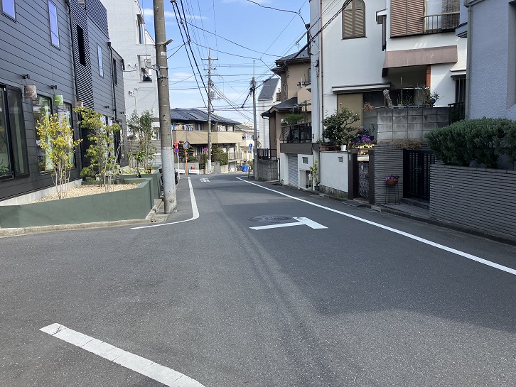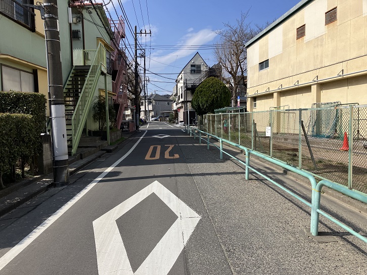 石神井川沿いの有楽町線氷川台駅から北東方向に進み、駐在所前交差点で左折します。氷川台二丁目交差点の先で右折して曲がりくねった住宅地の路地を進みますと、仲町小学校の手前から坂が下っています。
