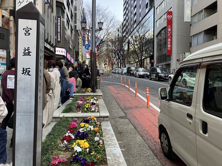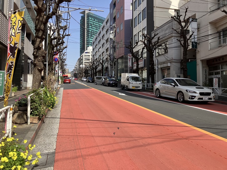 渋谷駅の北東側にある宮益坂下交差点から青山通り(国道246号線)との合流点の宮益坂上交差点まで坂が上がっています。