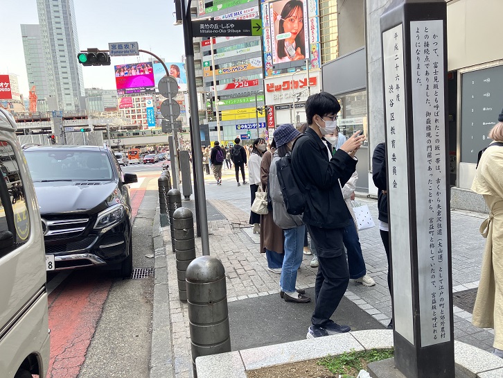 今回は渋谷区の坂道を、渋谷・代官山周辺、代々木・神宮前・千駄ヶ谷・笹塚、代々木上原と広尾・恵比寿の北側、広尾・恵比寿の南側の4つの地域に分けて巡ります。先ずは渋谷駅ハチ公改札からスタートします。