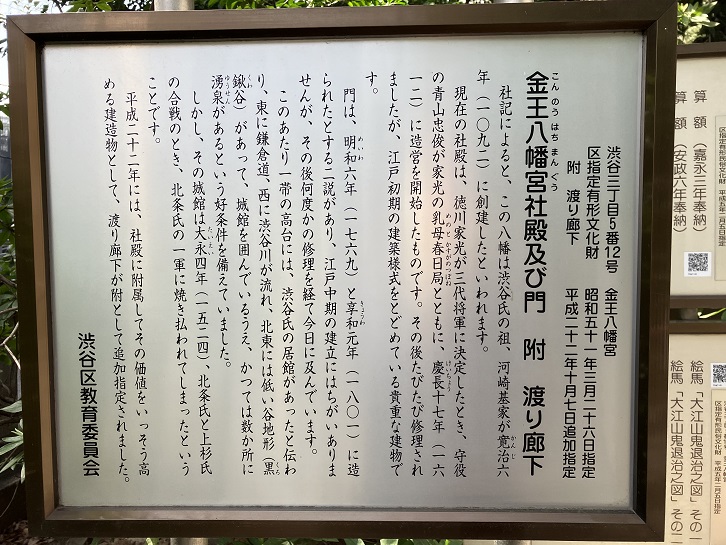 金王八幡宮社殿及び門は渋谷区の有形文化財に指定されています。