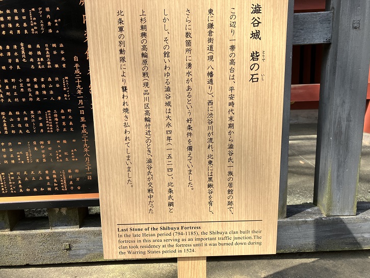 境内には澁谷城の砦の石も残されています。この石は900年近く渋谷の移り変わりを見てきたのでしょう。