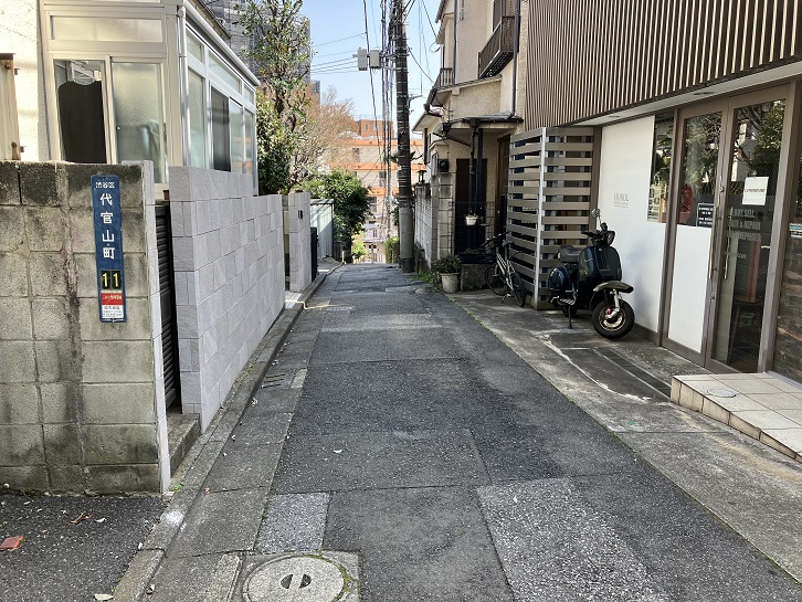 井ノ頭通りの神南小学校下交差点から東急ハンズの北側を通って東方向に坂が上がっています。