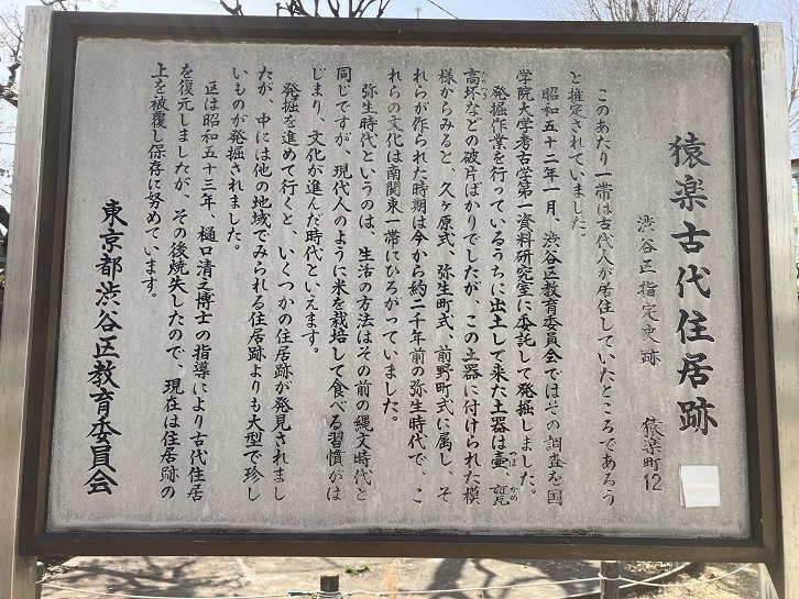 猿楽町には、猿楽古代住居跡公園があります。古代人が代官山に住んでいたんですか!きっとセレブな人達だったのでしょうね。