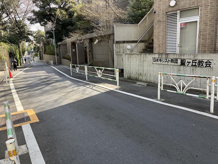 鉢出町交番前交差点から亀山坂の延長線上に聖ヶ丘教会付近まで坂が上がっています。