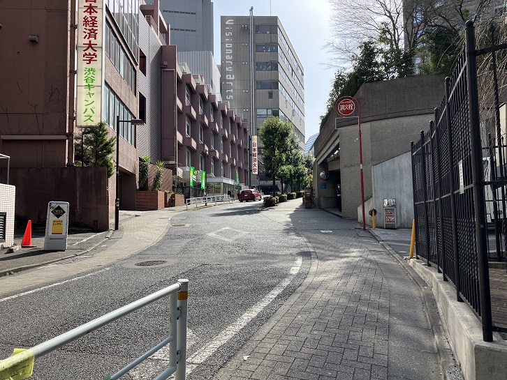 国道246号線に架かる渋谷駅西口歩道橋の手前にあるファミマ渋谷桜丘町店の左手に坂が上がっています。