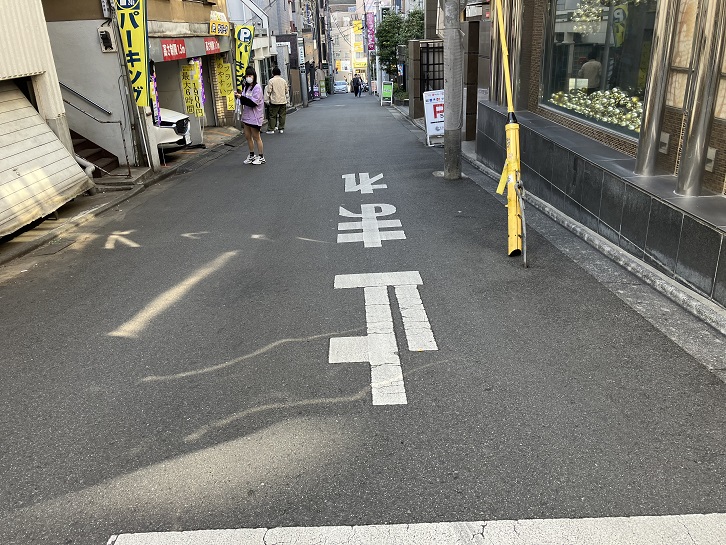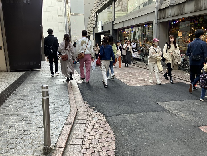 井ノ頭通りに面したマツキヨの脇から渋谷パルコまで、約100メートルほどの緩い坂が上がっています。