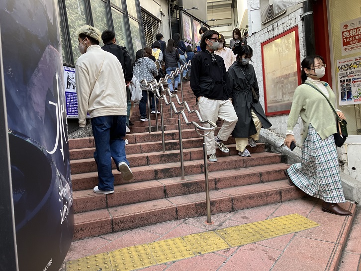 オルガン坂は長さが約80mほどのやや急な坂です。坂名の由来は、坂の周辺に音楽関係の店が多かったことに因むという説と、東急ハンズ前の階段がオルガンの鍵盤に見えることに因むという説があります。