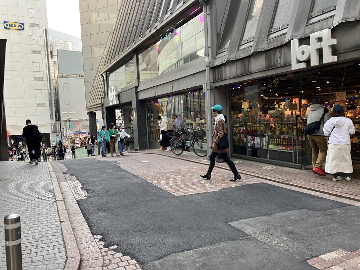 公園通りに面したLoftの角から井ノ頭通りに向かって坂が下っています。