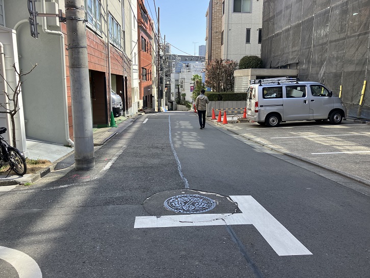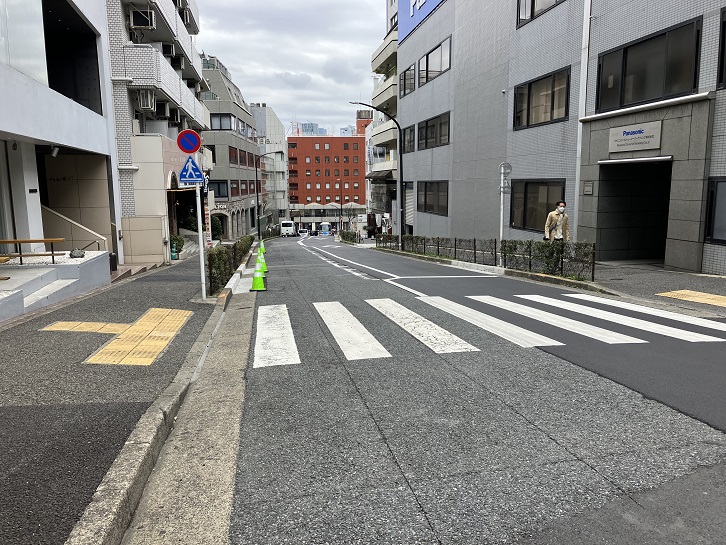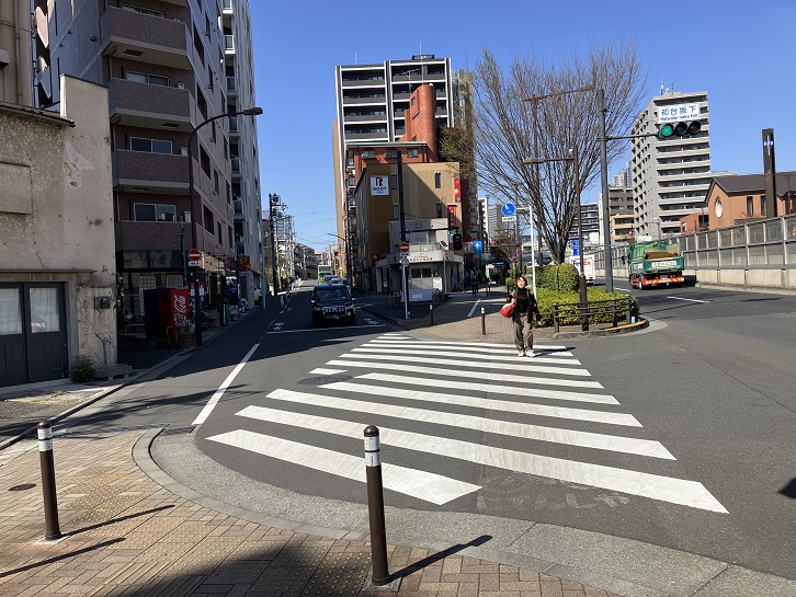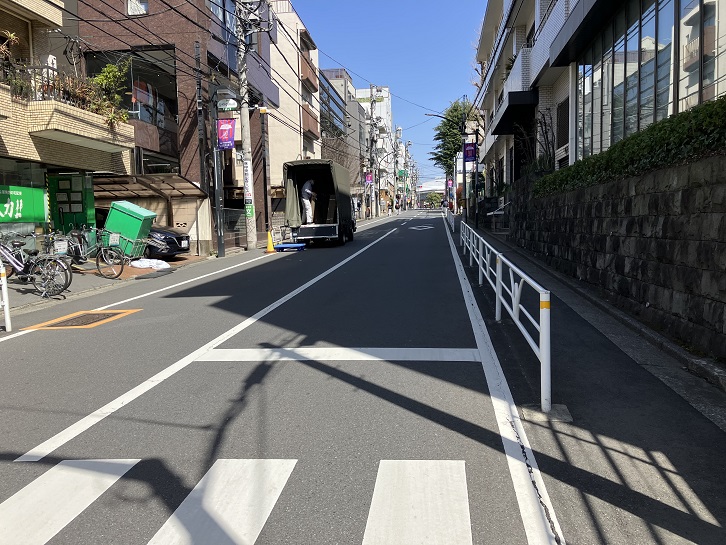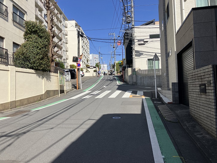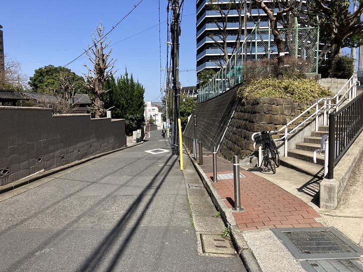 仙寿院交差点を左折し、神宮前二丁目交差点で右折した先に瑞円寺の前まで坂が上がっています。