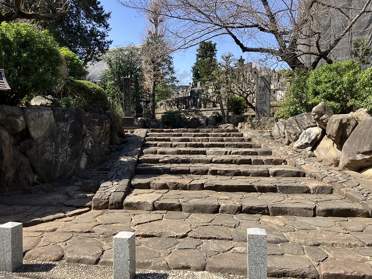 聖輪寺の手前で左手に路地が分岐し、その先から鳩森八幡神社に向かって坂が上がっています。この道筋は旧鎌倉街道になります。