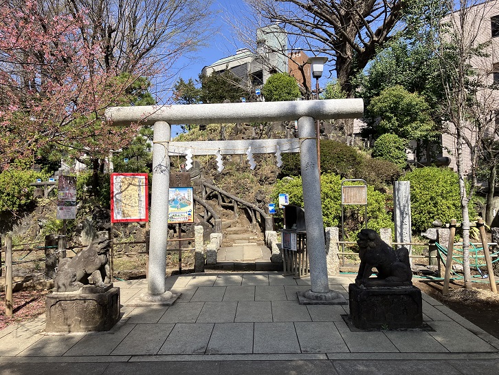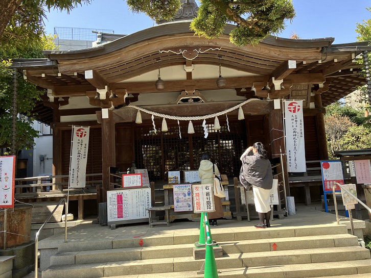 観音坂の先に、こんもりと繁った大木の中に将棋の神様で知られる鳩森八幡宮が鎮座しています。