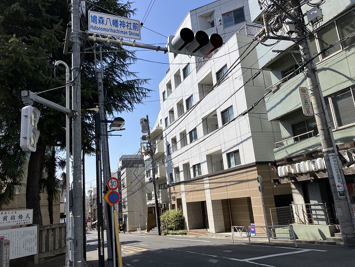 八幡坂は長さが約120mほどの緩やかな坂です。坂名は、鳩森八幡神社に由来します。