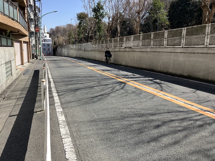 熊野神社を出て右折しますと、その先の国学院高校の西側に坂が下っています。この道筋は旧鎌倉街道になります。