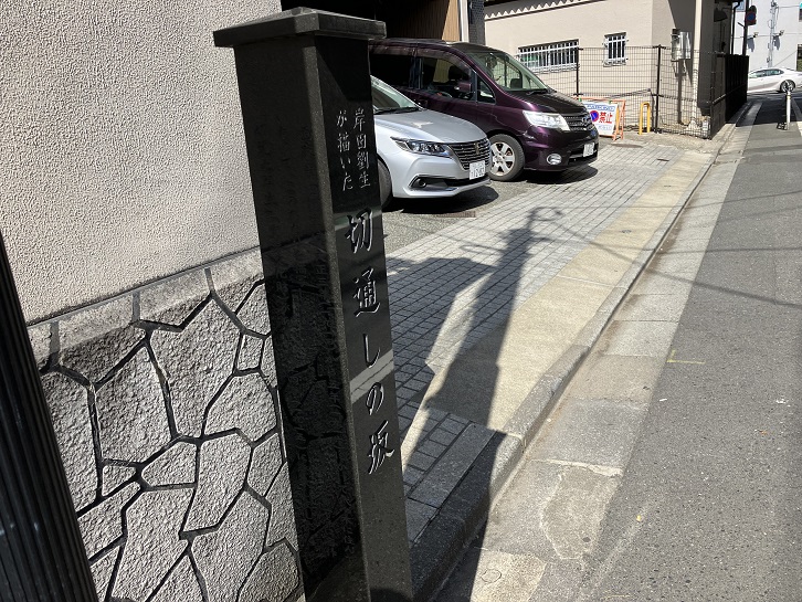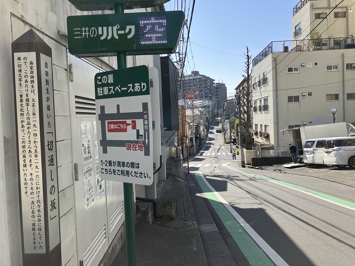 切通しの坂は長さが約150mほどのやや急な坂です。坂名は、大正から昭和初期の洋画家であった岸田劉正が大正四年(1915年)に制作した作品「切り通しの写生」に描かれた坂道ということに因んでいます。現在はこの坂の両側にマンションが建ち並んでいて「切り通し」にはなっていませんが、大正初期にはこんな風景だったんですね。