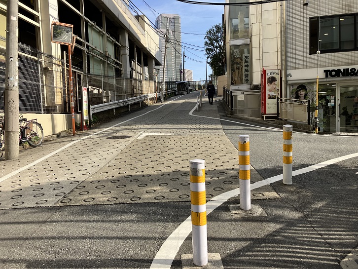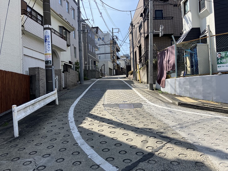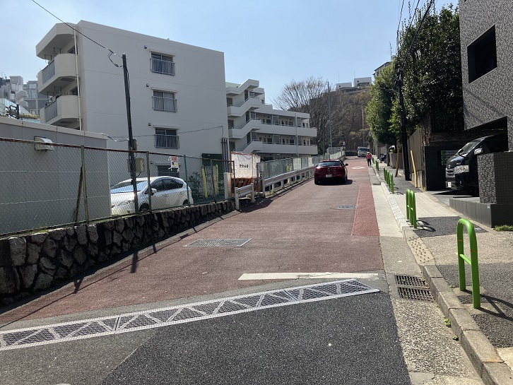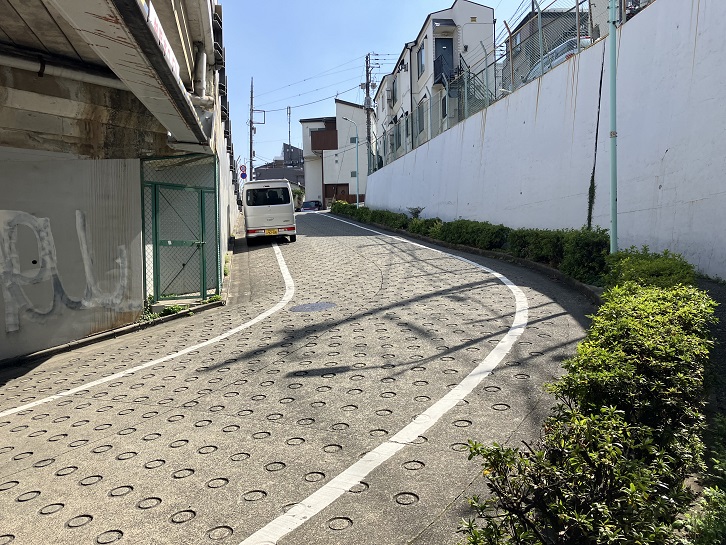 長谷戸小学校の前から恵比寿公園に向かって坂が下っています。