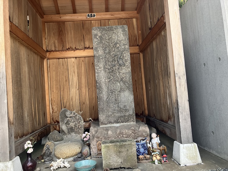 恵比寿南三丁目交差点の角に、小さなお堂が建っています。ここは祐天寺に行く道と目黒不動尊に行く道が分かれていたところなのでしょう。道標の横には欠けた仏像らしき石碑も置かれています。