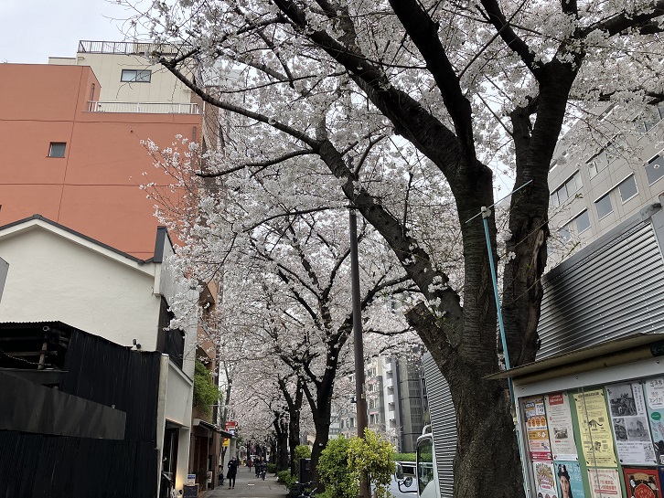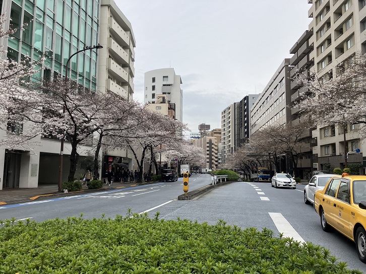 渋谷橋交差点から広尾一丁目交差点にかけて、明治通りの歩道の桜は満開で花のトンネルになっています。
