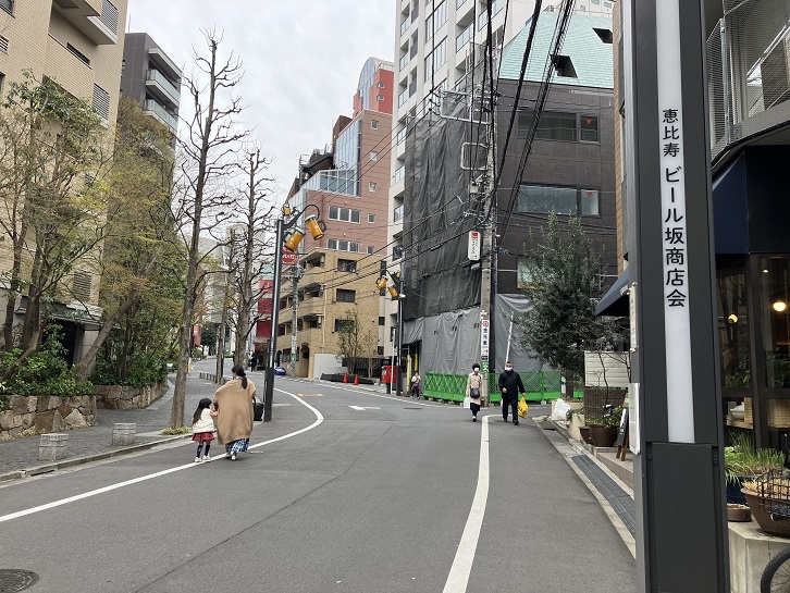 恵比寿橋南交差点から恵比寿ガーデンプレイスの北端辺りまで長い坂が上がっています。