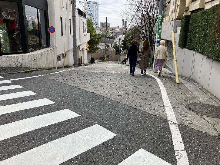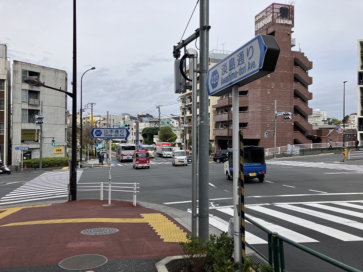 淡島通りは、山手通りの松見坂交差点から駒場方面に向かって再び上がっています。