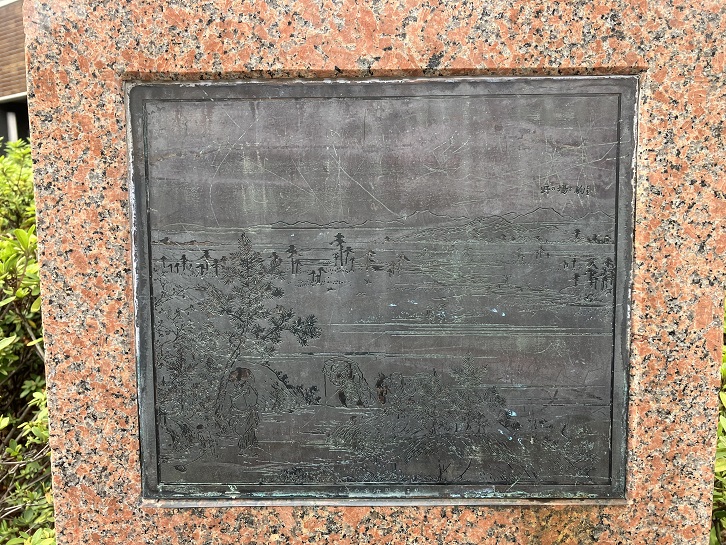 石柱には、かっての松見坂を描いた挿絵も添えられています。松の木の下を歩く旅人の顔がやけにもの悲しい表情をしていますね。