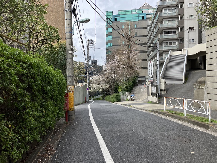 富士見坂は長さが約150mほどの緩やかな坂です。坂上に現在のような高い建物がなかった時代には、坂上から富士山が綺麗に見えたことでこの坂名が付けられたのでしょう。そんなことを言ったら、周辺の坂は全て富士見坂になってしまいますが。