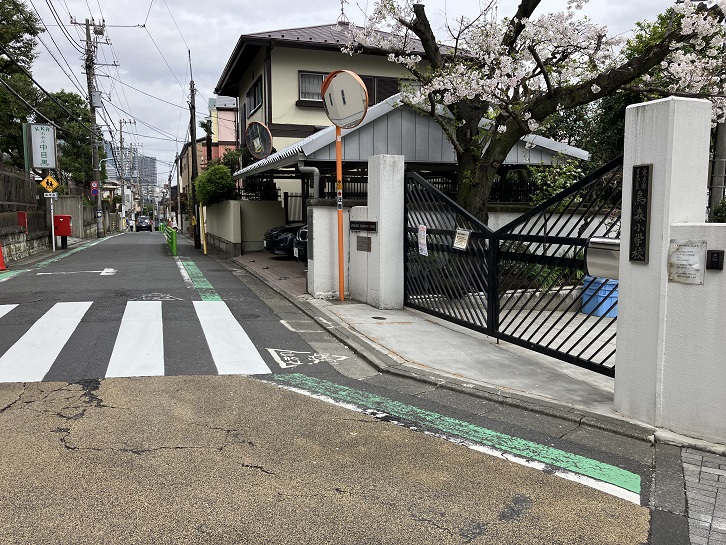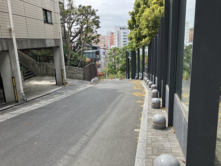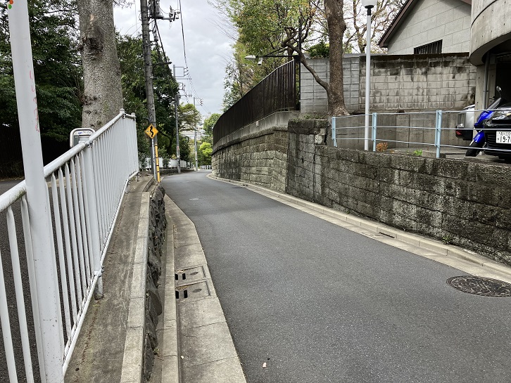 目黒学園中学校・高等学校の先から左右に曲がりながら急な坂が上がっています。