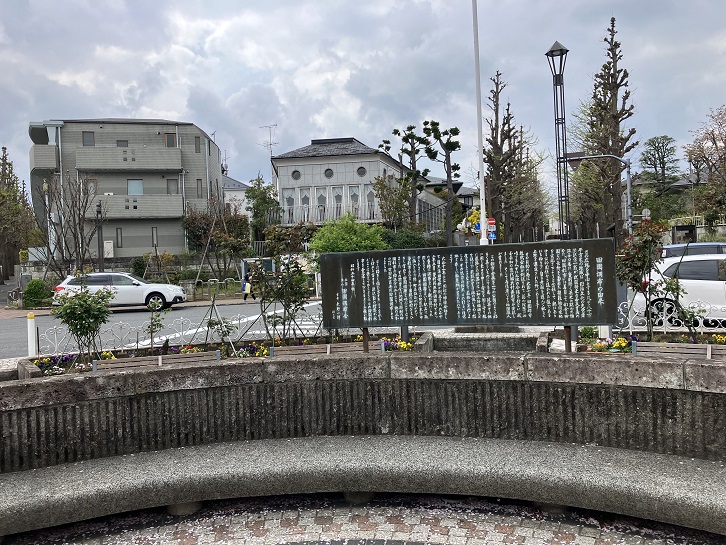 この広場を中心とする凡そ八十万平方米の地域は、明治文化の先覚者渋沢栄一翁が我国将来の国民生活の改善の為に、当時漸(ようや)く英米に現われ始めた「田園都市」に着目して都会と田園との長所を兼ねた模範的住宅地を実現させようと念願して、既にあらゆる公的関係から退かれた後であるにも拘らず、自ら老躯を運んで親しく土地を選定された所であります。その目的の為に大正七年、田園都市株式会社が創設されて、翁の理想に共鳴する人々に土地の分譲を行ない、我国最初の近代的大計画都市が実現しました。そして居住者による社団法人が生まれました。この都市全体を一つの公園のように明るく美しいものにする為、建築その他に関し色々な申し合せを固く守り、殊に道路との境界には一切土塀板塀などを設けず、花垣か生け垣の低いものゝ程度とすることなどを厳格に実行しました。その協力の結果、この明るい住宅地と楽しい散策地が生れたのであります。大正十一年には同社の姉妹会社として目黒蒲田電鉄が創立され、大正十二年三月、当時荏原郡調布村であった当地に調布という駅が設けられ、間もなく田園調布という駅名に改められました。その後この地区が東京市に編入された際、町名改正が行われて当都市のみならず周辺の町村をもひろく含めて田園調布と呼ぶことゝなりました。その折当会の地域は頭初の田園都市の約三分の二となり、他の三分の一は世田谷区玉川田園調布となりました。こゝに明るく住む方々も、こゝを来しく訪れる方々も、渋沢翁の理想が永くこゝに栄えてゆくように、この田園都市を愛護して下さるようお願い致します。