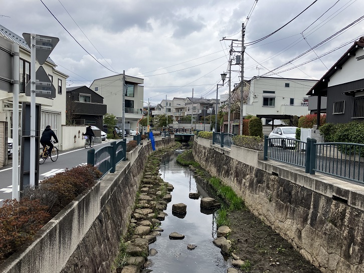 丸子川は江戸時代初期に開墾された六郷用水の中流部分が整備され、名称を変えて残っている川です。六郷用水は、事業を担当した奉行の名から「次大夫堀」とも呼ばれていました。昭和二十六年(1951年)に始まった水路の改修により、六郷用水は廃止されて幾つかの区間に分けて埋め立てや排水路としての整備が行われることとなりました。仙川に架かる水神橋付近から多摩川との合流地点までの区間が「丸子川」と呼ばれています。