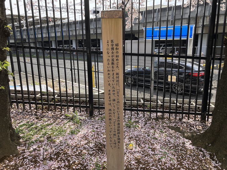 坂名の由来は不明ですが、坂の途中に滝があり、崖下の池に水が流れ込んでいますので、それに因んでいるのかもしれません。