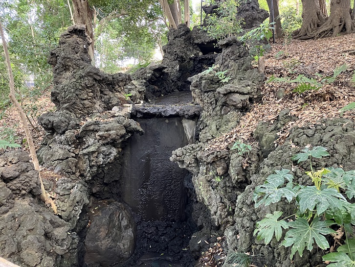 田園調布せせらぎ公園は大正から昭和まで「多摩川園」と呼よばれる子どもたちに大人気の遊園地でした。大山坂は「大山すべり」という地形を活かした長いすべり台でとてもスリリングなアトラクションでした。現在は約50メートルの階段になっています。
