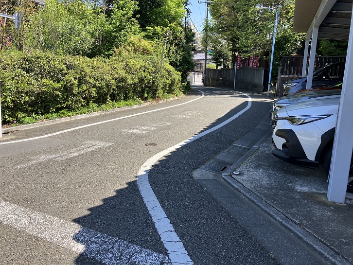 三谷小学校の南西角から1ブロック西に進んだところから、北に向かって坂が上がっています。