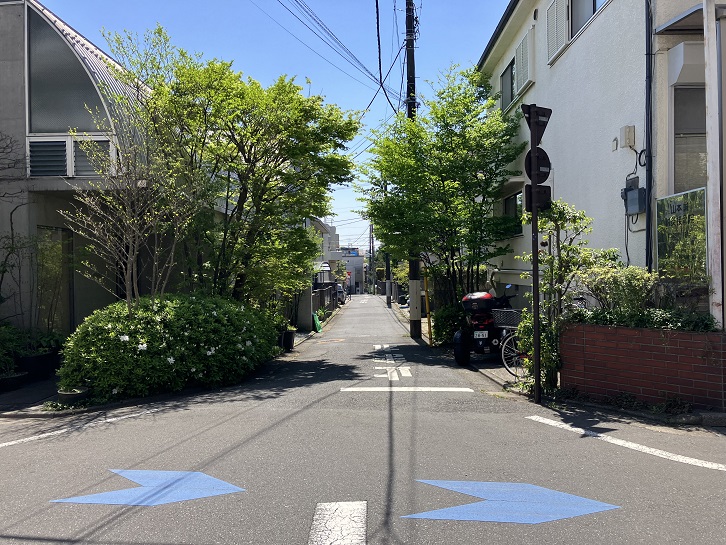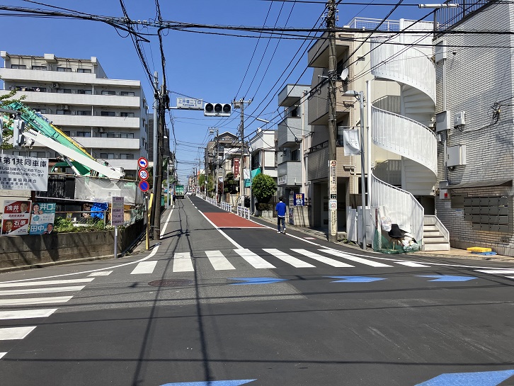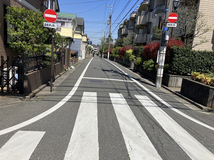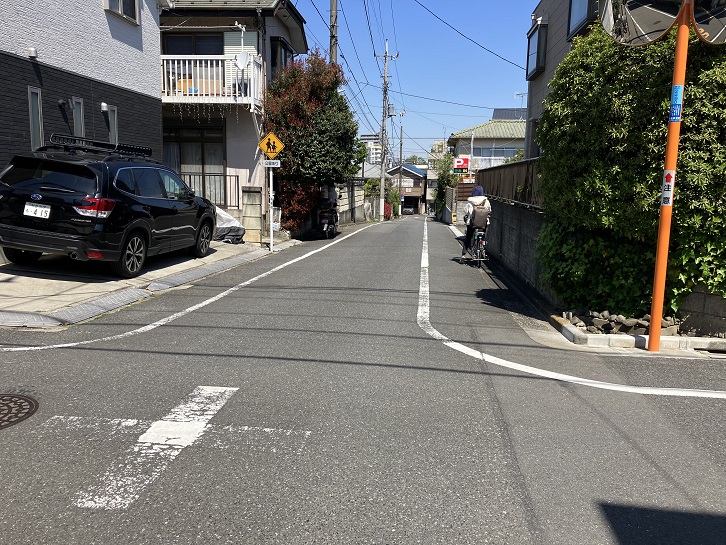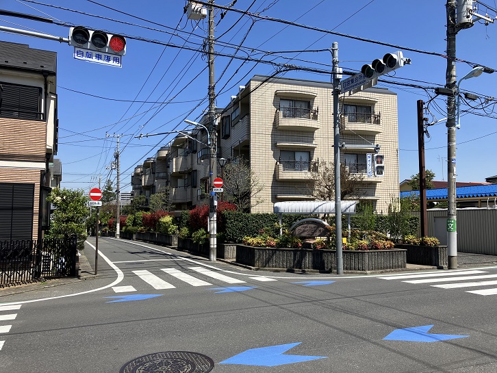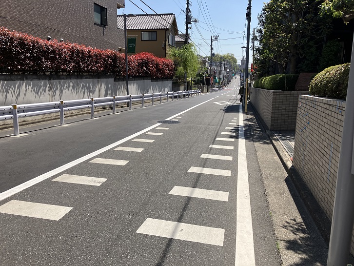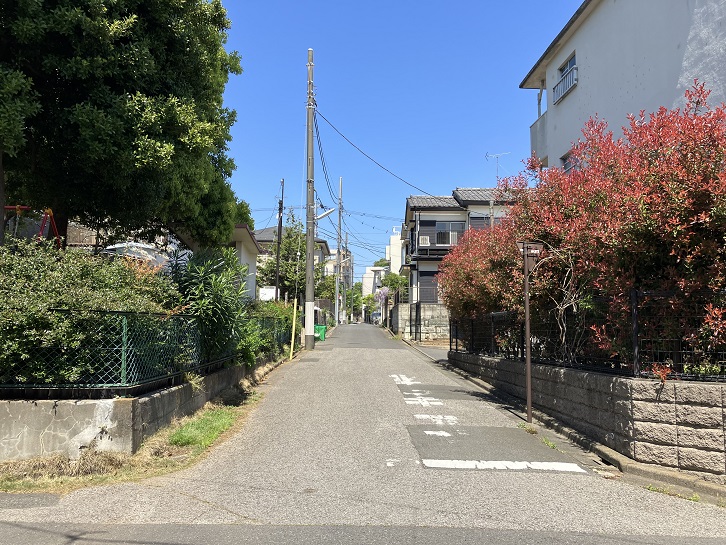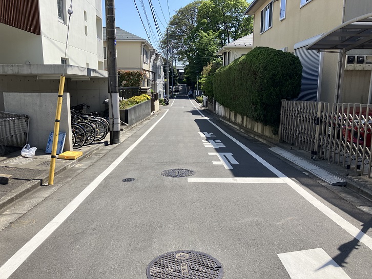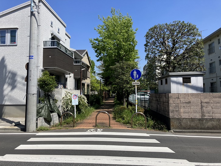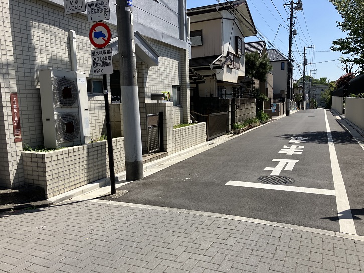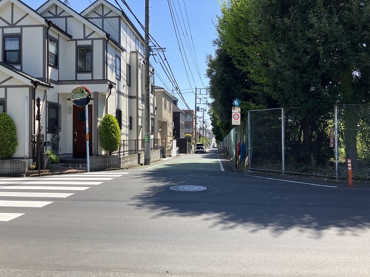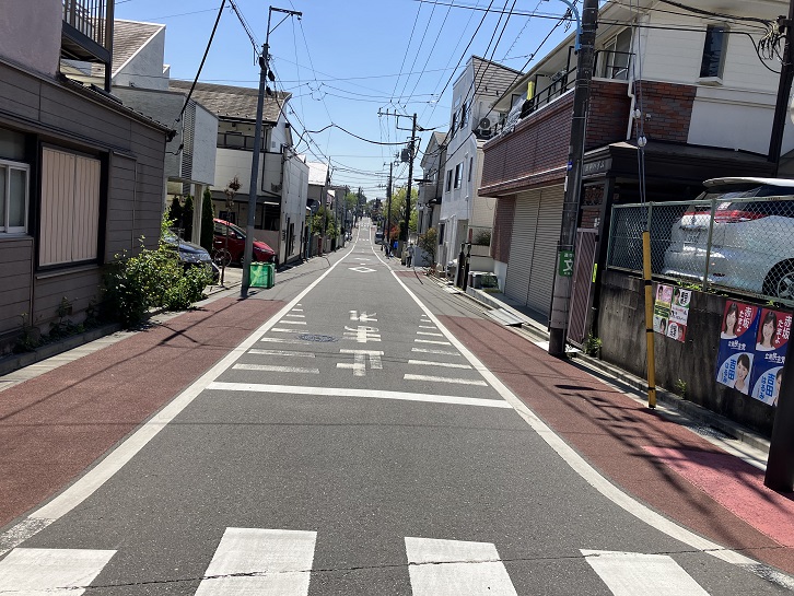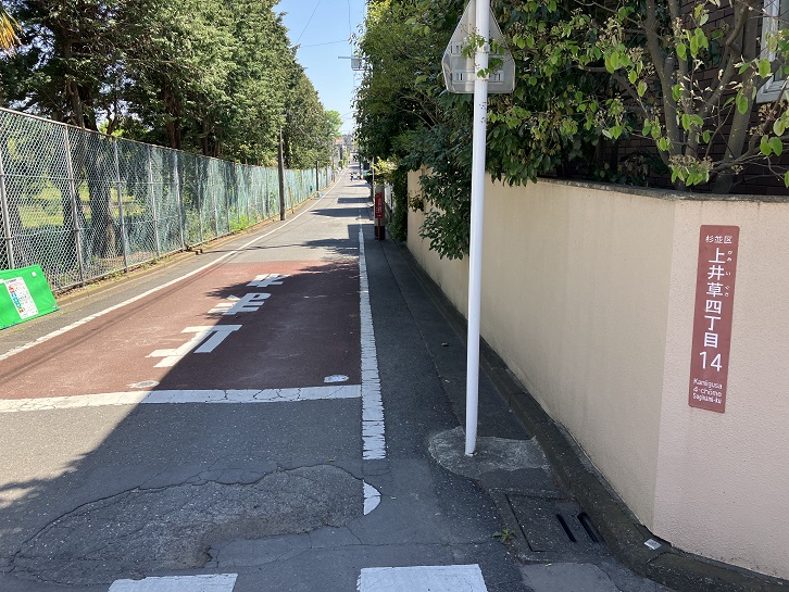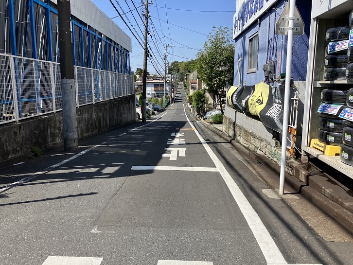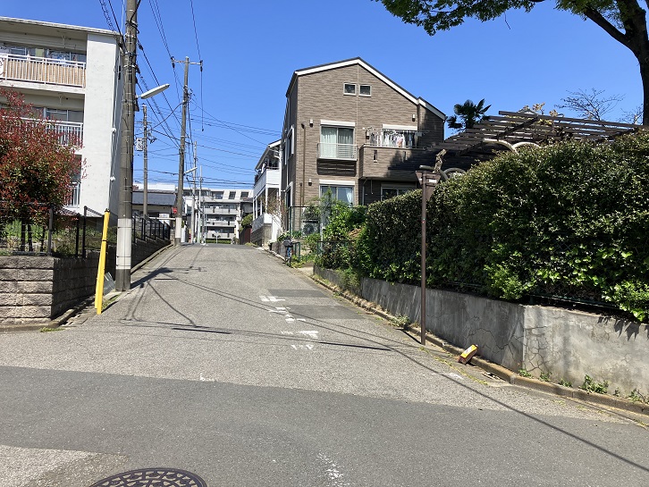 お見合い坂の坂下から1ブロック西に進んだ上井草二丁目交差点から北に向かって坂が上がっています。
