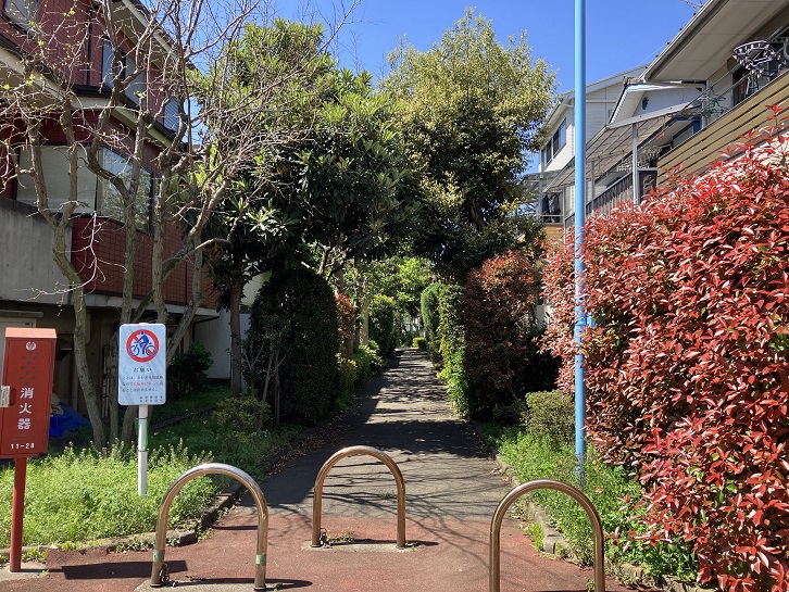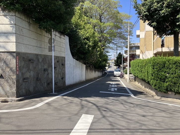 上井草向山公園の南側を回り込んだところから、すみれ坂と並行して坂が上がっています。