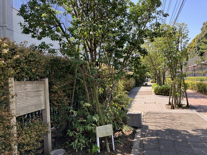 以前は植栽の中に坂名を記した標識が立っていたそうですが、見つかりませんでした。